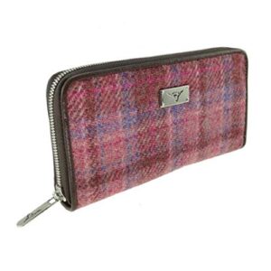 Glen Appin Harris Tweed Large Zip Purse LB2100 Staffa – Colour 103 Pink Check