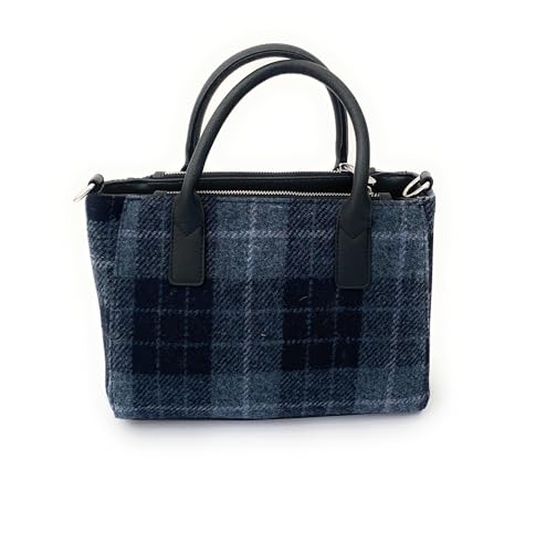 Glen Appin Harris Tweed Tote Handbag – LB1228 Brora With Detachable Shoulder Stap – Col 95 Grey-Black