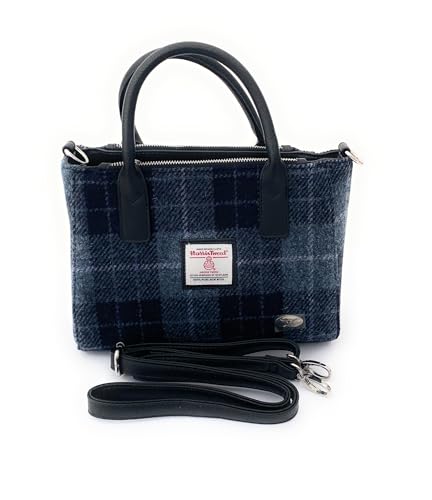 Glen Appin Harris Tweed Tote Handbag – LB1228 Brora With Detachable Shoulder Stap – Col 95 Grey-Black