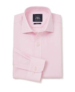 THE SAVILE ROW COMPANY LONDON Men’s Slim Fit Cotton Twill Long Sleeve Formal Shirt – Double Cuff
