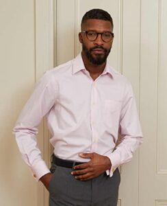 THE SAVILE ROW COMPANY LONDON Men’s Slim Fit Cotton Twill Long Sleeve Formal Shirt – Double Cuff