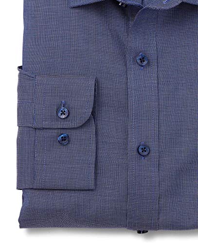 THE SAVILE ROW COMPANY LONDON Men’s Slim Fit Cotton Long Sleeve Casual Shirt – XL, Navy White – Plain – Textured