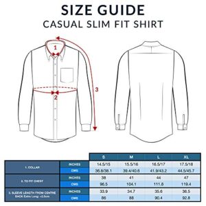 THE SAVILE ROW COMPANY LONDON Men’s Slim Fit Cotton Long Sleeve Casual Shirt – XL, Navy White – Plain – Textured