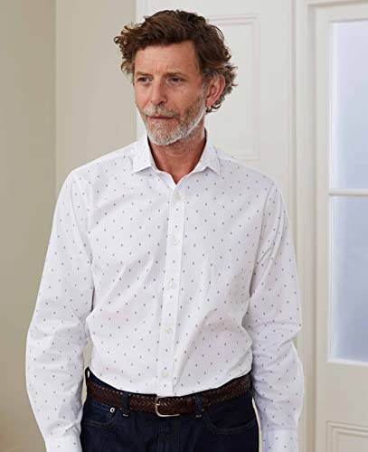 THE SAVILE ROW COMPANY LONDON Men’s Slim Fit Cotton Long Sleeve Casual Shirt – M, Limited Edition White Print
