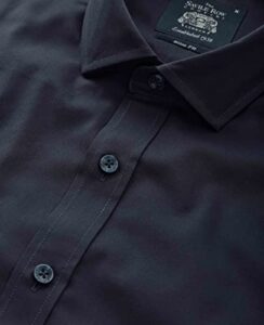THE SAVILE ROW COMPANY LONDON Men’s Slim Fit Cotton Long Sleeve Casual Shirt – L, Navy Twill