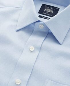 THE SAVILE ROW COMPANY LONDON Men’s Classic Fit Textured Cotton Long Sleeve Formal Shirt – Single Cuff