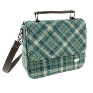 Glen Appin Women’s Harris Tweed ‘Thurso’ Square Bag in Grey & Black Tartan Hand – Duck Egg and Cream Check