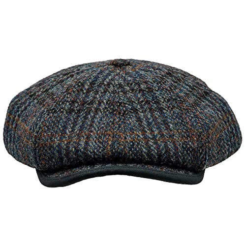 Sterkowski Malone Cap | 100% Harris Tweed 8 Piece Newsboy Hat | Vintage English Applejack Gatsby Flat Cap with Quilted Lining – 7 1-8, Dark Blue Check