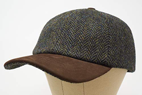 Borges & Scott Munro – Premium Baseball Cap – Harris Tweed and Nubuck Leather – One Size, Ivy Green Herringbone