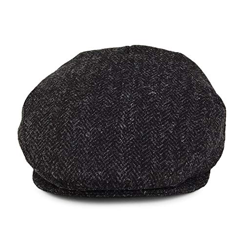 Jaxon & James Harris Tweed Herringbone Ardmore Flat Cap – Blue-Black – s, Black-Charcoal