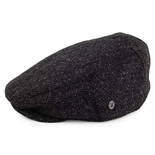Jaxon & James Harris Tweed Herringbone Ardmore Flat Cap – Blue-Black – s, Black-Charcoal