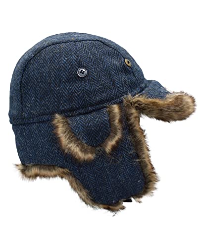 WALKER AND HAWKES – Harris Tweed Charles Trapper Hat – XL, Midnight Blue