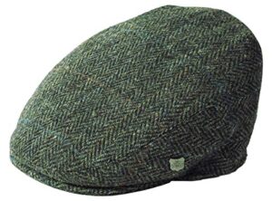 Failsworth Hats Stornoway Windowpane Harris Tweed Flat Cap – Moss-Brown – 7 1-4, Pattern 2012 – Grey