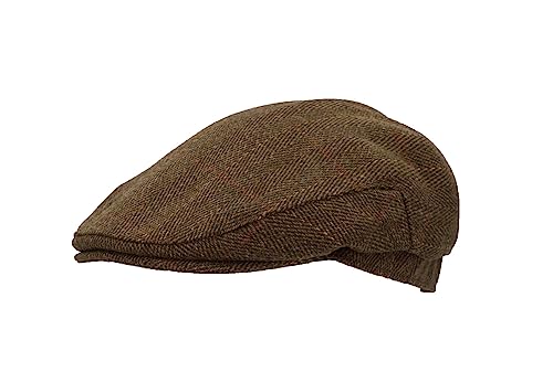 WALKER AND HAWKES – Derby Tweed Eddie Flat Cap w/Foldable Ear Flaps – L, Brown Tweed