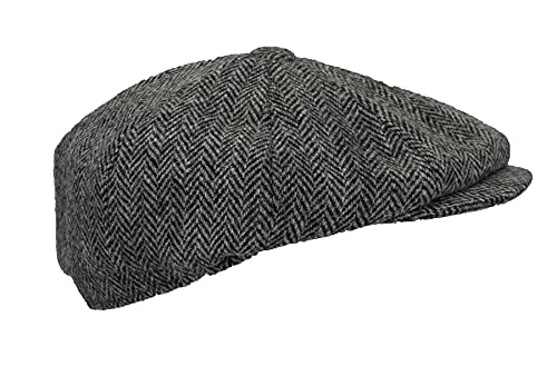 WALKER-AND-HAWKES-Harris-Tweed-8-Panel-Thomas-Baker-Boy-Cap-Steel-Grey-S-57cm-0-1