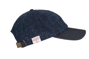 WALKER AND HAWKES – Harris Tweed Brungton Baseball Cap w/Suede Leather Peak – One Size, Midnight Blue