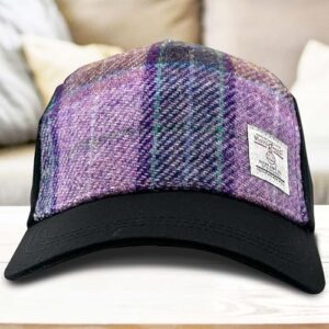 BRAW-CLANS-TARTANS-Harris-Tweed-Baseball-Cap-One-Size-100-Wool-Front-Panel-Traditional-PinkLilac-Check-Tartan-Adjustable-Metal-Back-Unisex-Gift-for-Men-and-Women-0-0
