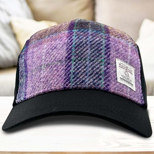 BRAW CLANS TARTANS Harris Tweed Baseball Cap | One Size | 100% Wool Front Panel | Traditional Tartan Design | Adjustable Metal Back | Unisex Gift for Men and Women – 6 7-8-7, Pink-Lilac Check