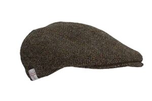 WALKER AND HAWKES – Men’s Grey Brown 100% Scottish Harris Tweed Oakmoor Flat Cap