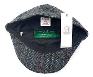 Mens Harris Tweed Flat Cap Comfort Fit Quilted Lining Made in Scotland S-XXL – XL, Grey Check