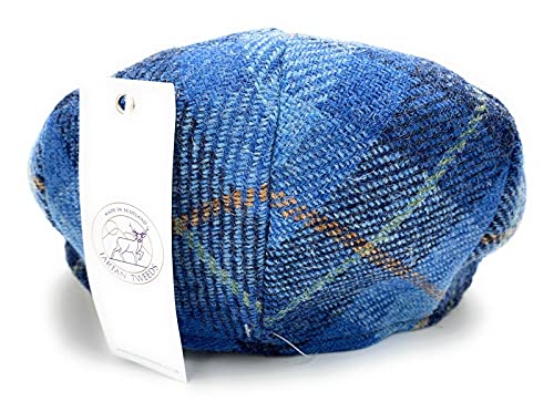 Mens Harris Tweed Flat Cap Comfort Fit Quilted Lining Made in Scotland S-XXL – s, Blue Check