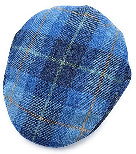 Mens Harris Tweed Flat Cap Comfort Fit Quilted Lining Made in Scotland S-XXL – s, Blue Check