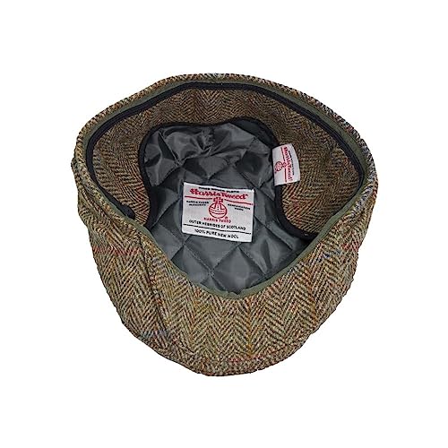 WALKER AND HAWKES – Harris Tweed Edward Flat Cap w/Foldable Ear Flaps – M, Moss Green