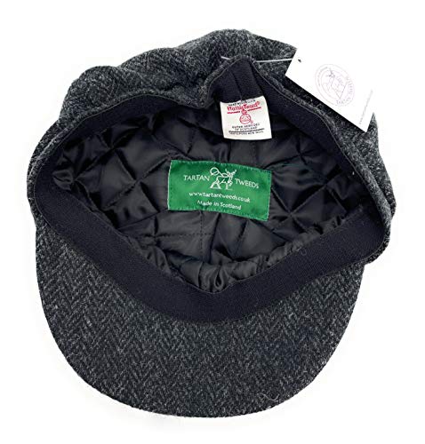 Women’s Harris Tweed Baker Boy Cap Hat One Size Made in The UK – One Size, Charcoal