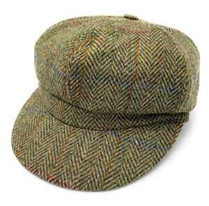 Women’s Harris Tweed Baker Boy Cap Hat One Size Made in The UK – One Size, Green Herringbone