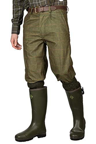 Rydale Mens Tweed Print Shooting Breeks Waterproof Hunting Trousers for Men Plus Fours Short Trouser 2 Colours – 32″, Heathland