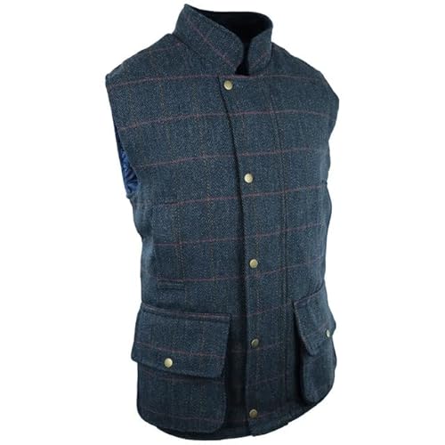 Hazy Blue Mens Tweed Hunting Shooting Bodywarmer Waistcoat Outdoor Farmer Gilet