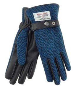 Ladies Black Leather and Authentic Harris Tweed Gloves COL 66