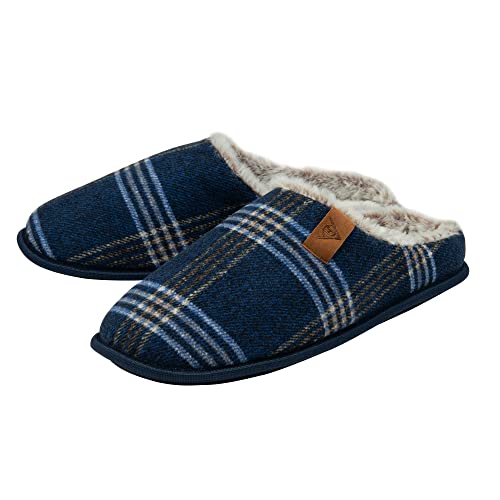DUNLOP-Mens-Check-Mule-Slippers-Navy-UK-8-0