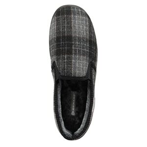 DUNLOP Mens Twin Gusset Full Back Comfy Fur Lined Memory Foam House Slippers with Outdoor Soles