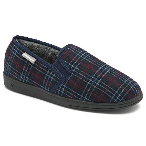 DUNLOP Mens Twin Gusset Full Back Comfy Fur Lined Memory Foam House Slippers with Outdoor Soles