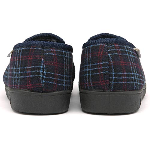 DUNLOP Mens Twin Gusset Full Back Comfy Fur Lined Memory Foam House Slippers with Outdoor Soles