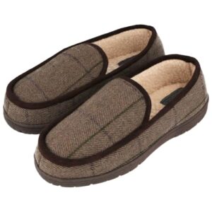 Jo & Joe Mens Wide Fit Tweed Faux Sheepskin Moccasin Full Slippers