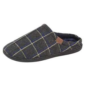 Mens-Harrison-Jo-Joe-Tweed-Faux-Fur-Lined-Slip-On-Mules-Slippers-Size-7-12-7-UK-Grey-Navy-0-0