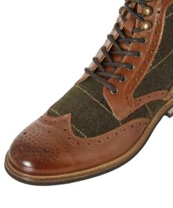 Joe Browns Men’s Premium Leather and Tweed Brogue Boots Ankle