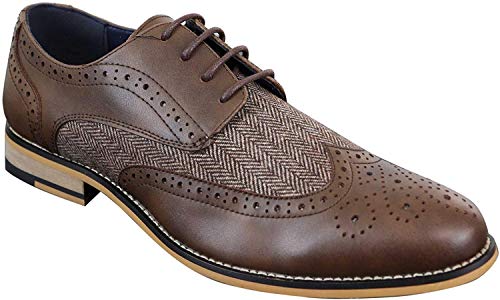 Mens Leather Tweed Herringbone Smart Casual Shoes Vintage Classic – 7 UK, Brown