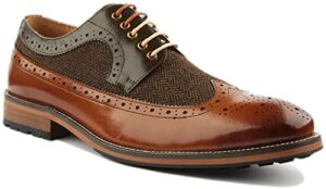 JUSTINREESS Barrett Men’s Lace Up Rugged Sole Two Toned Leather Brogue Shoes with Tweed Panels (Brown, 8 UK)