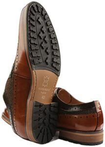 JUSTINREESS Barrett Men’s Lace Up Rugged Sole Two Toned Leather Brogue Shoes with Tweed Panels (Brown, 8 UK)