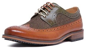 JUSTINREESS Barrett Men’s Lace Up Rugged Sole Two Toned Leather Brogue Shoes with Tweed Panels (Brown, 11 UK)