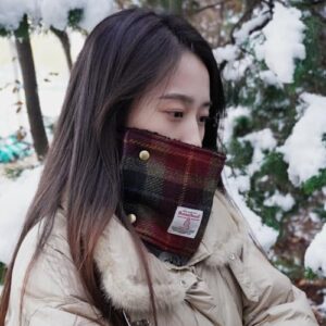 TAILORMAP Harris Tweed Wool Neck Warmer for Women and Men Warm Scarf with Velvet Snap Collar Anti-cold Neck Plaid Scarf – No.3591