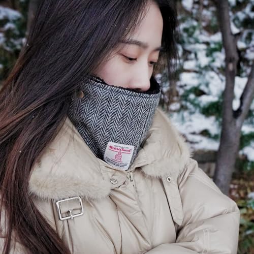 TAILORMAP Harris Tweed Wool Neck Warmer for Women and Men Warm Scarf with Velvet Snap Collar Anti-cold Neck Plaid Scarf – Grey