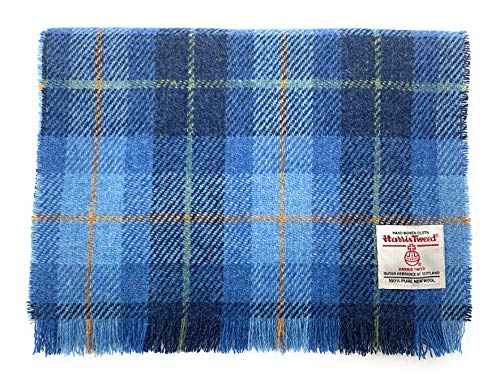 Harris Tweed Fringed Scarf Unisex – Blue Check