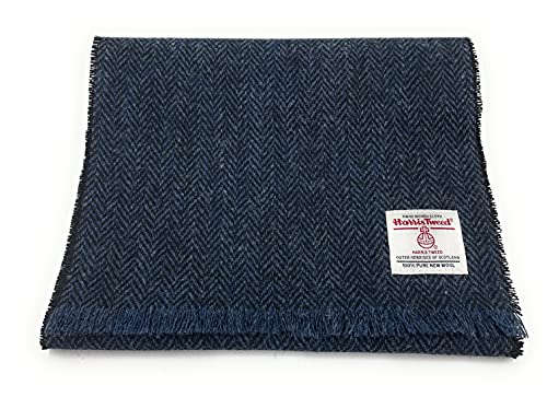 Navy-Herringbone-Harris-Tweed-Fringed-Scarf-Unisex-0