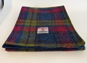 Luxury Harris tweed checked scarf lined with marine blue velvet, 100% wool, HANDMADE IN THE UK/FREE DELIVERY