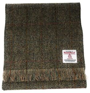 Scott & MacKenzie Harris Tweed Scarf in a Green Herringbone Design, One Size