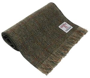 Scott & MacKenzie Harris Tweed Scarf in a Green Herringbone Design, One Size
